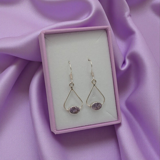 Sterling Silver Amethyst Drop Earrings 1.4"