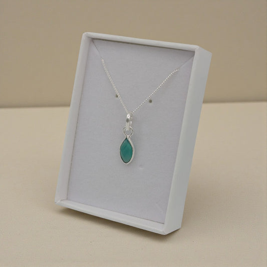 Sterling Silver Dainty Green Onyx Diamond Shape Stone Necklace