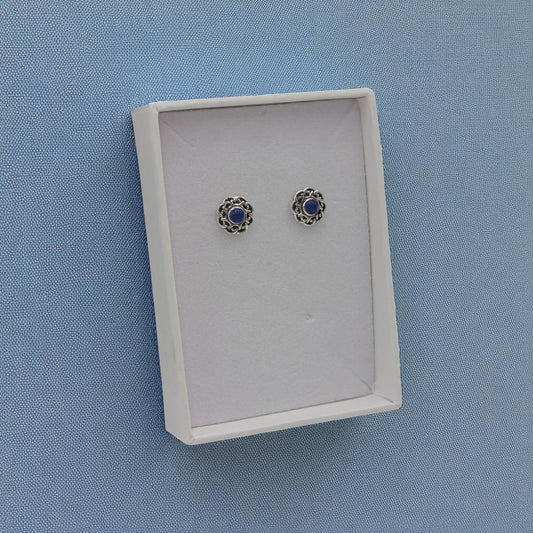 Sterling Silver Lapis Lazuli Celtic Round Stud Earrings 0.3"