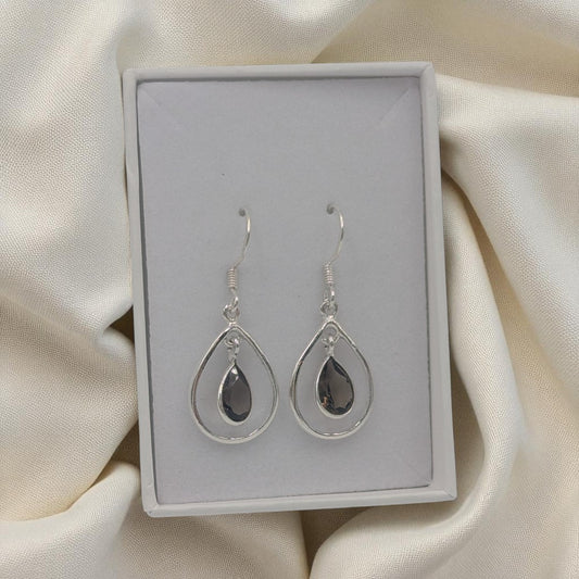 Sterling Silver Smoky Quartz Open Teardrop Shape Earrings 1.4"