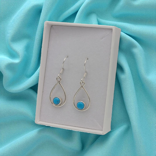 Sterling Silver Turquoise Open Teardrop Shape Earrings 1.4"