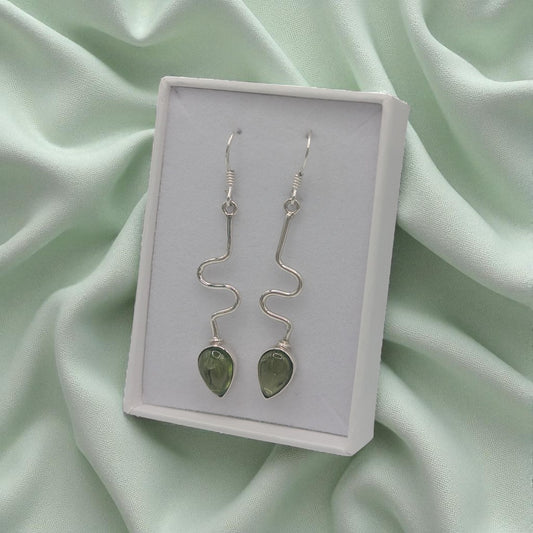 Sterling Silver Peridot Wavy Post Drop Earrings 1.9"