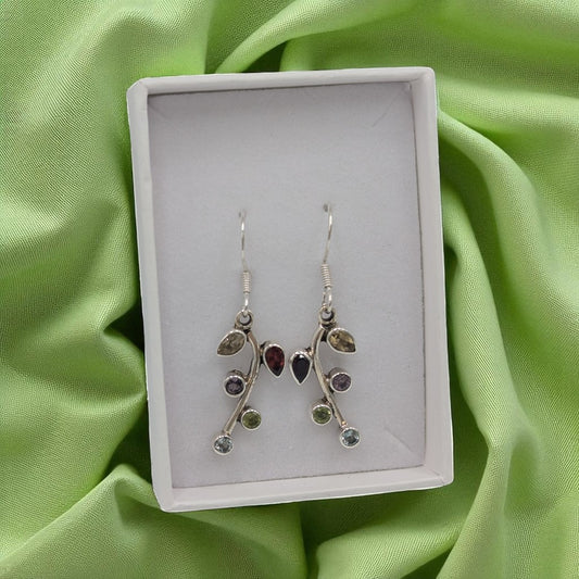 Sterling Silver Multi Stone Leaf Style Drop Earrings 1.5"