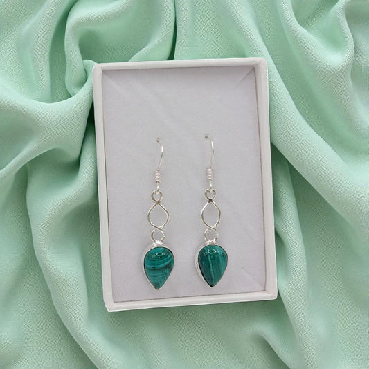 Sterling Silver Malachite Love Spoon Design Drop Earrings 1.6"