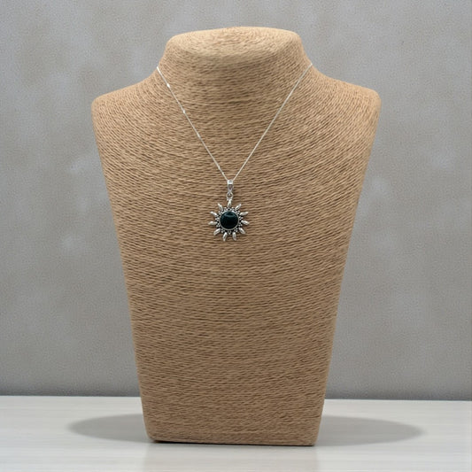 Sterling Silver Emira Green Onyx Celestial Sun Necklace