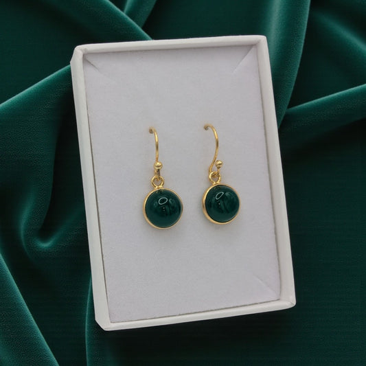 Emira Gold Plated Sterling Silver Green Onyx Round Stone Drop Earrings
