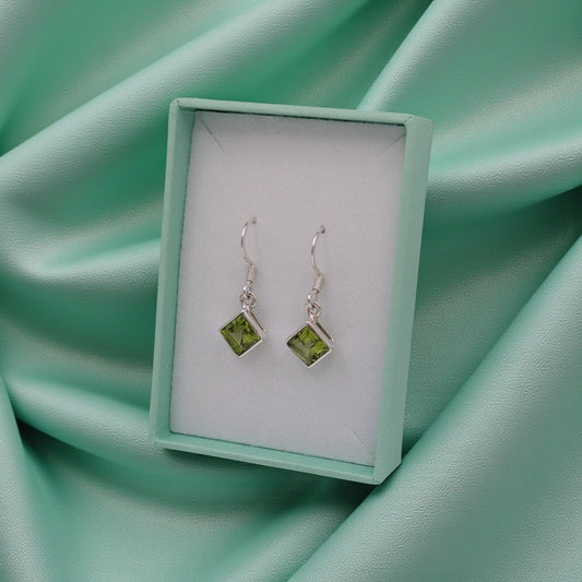 Sterling Silver Peridot Diamond Shape Drop Earrings 1.1"