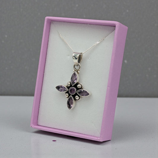 Sterling Silver Emira Amethyst Five Stone Necklace