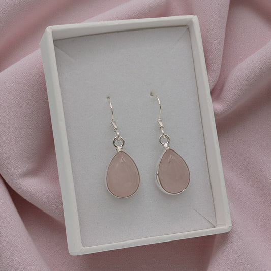Sterling Silver Rose Quartz Teardrop Earrings 1.3"