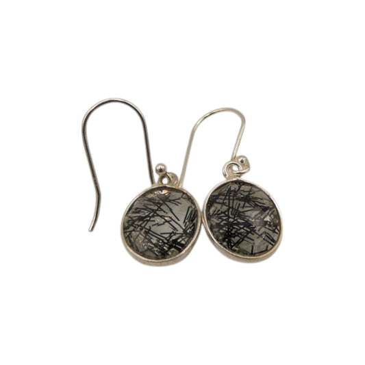Sterling Silver Black Rutilated Quartz Oval Drop Earrings 1.25"