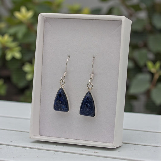 Sterling Silver Lapis Lazuli Curved Triangular Drop Earrings 1.5"
