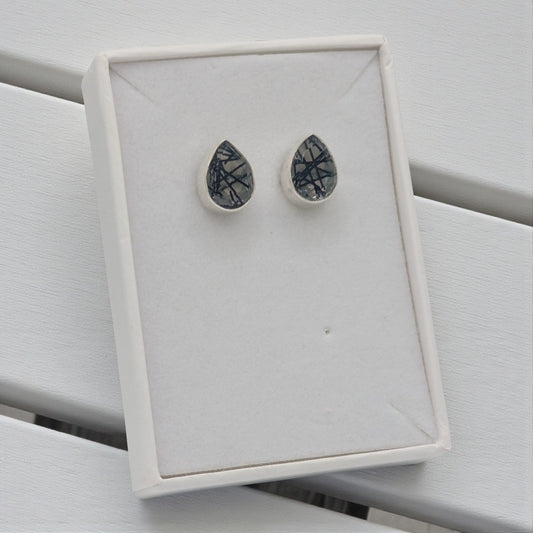 Sterling Silver Emira Black Rutilated Quartz Teardrop Stud Earrings 0.4"