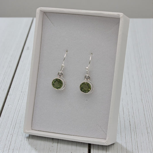 Sterling Silver Emira Peridot Round Stone Drop Earrings 1.2"