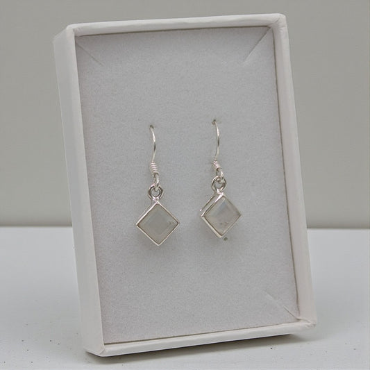 Sterling Silver Emira Moonstone Diamond Shape Drop Earrings 1.1"