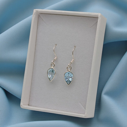 Sterling Silver Blue Topaz Teardrop Earrings 1.1"