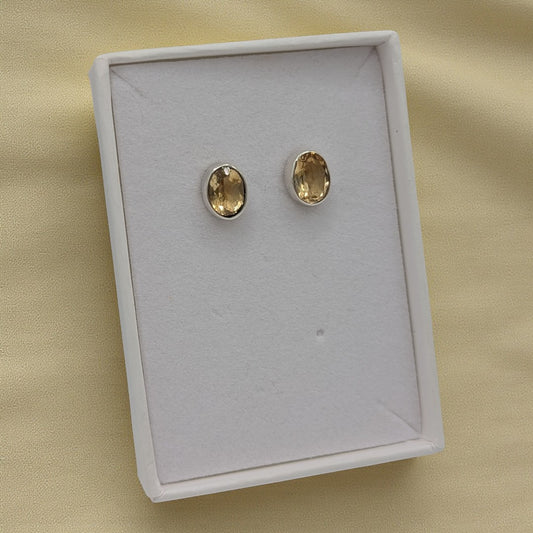 Sterling Silver Citrine Oval Stud Earrings 0.4"