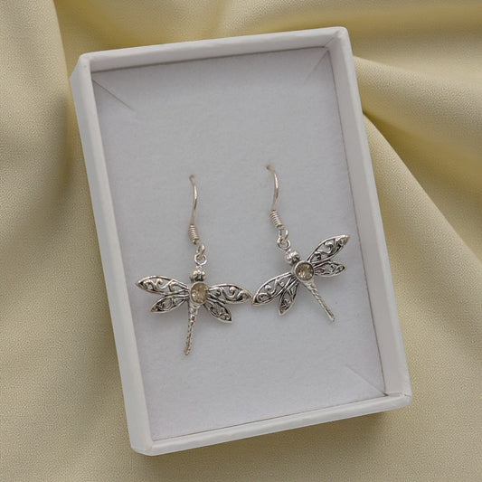 Sterling Silver Emira Dragonfly Citrine Drop Earrings 1.5"