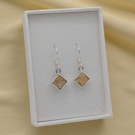 Sterling Silver Emira Sparkling Citrine Diamond Shape Drop Earrings 1.1"