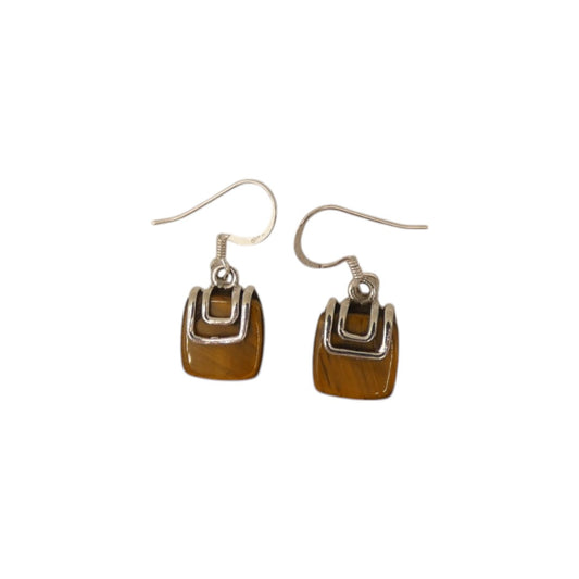 Sterling Silver Tiger's Eye Hanging Style Drop Earrings 1.25"