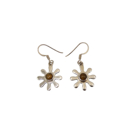 Sterling Silver Tiger's Eye Daisy Design Drop Earrings 1.4"