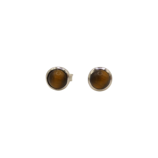 Sterling Silver Tiger's Eye Round Stud Earrings 0.3"