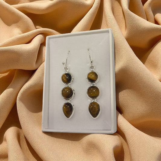 Sterling Silver Tiger's Eye Multi Stone Drop Earrings 1.75"