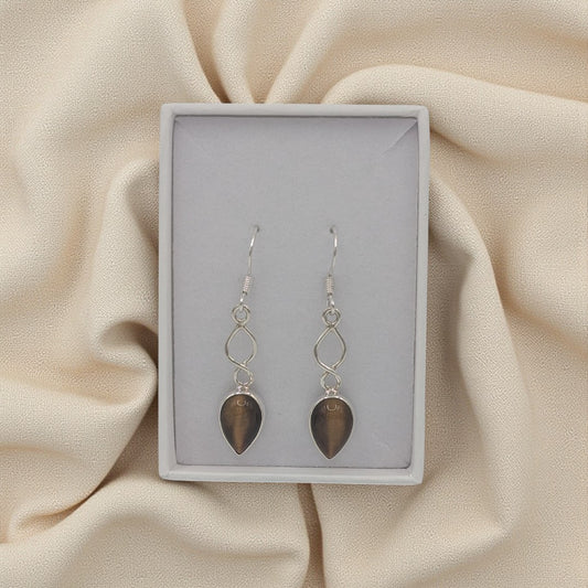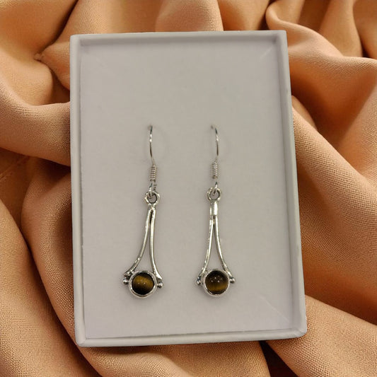 Sterling Silver Tiger's Eye Silver On Stone Drop Earrings 1.1"