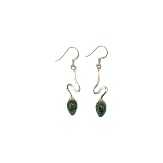 Sterling Silver Malachite Love Spoon Design Drop Earrings 1.6"