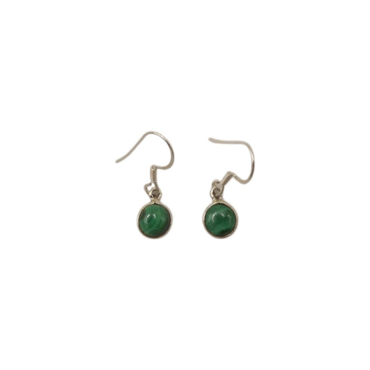 Sterling Silver Malachite Round Stone Drop Earrings 1.1"