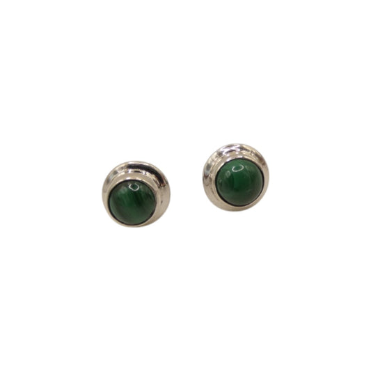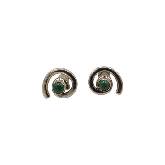 Sterling Silver Malachite Swirl Stud Earrings With Centre Stone 0.6"