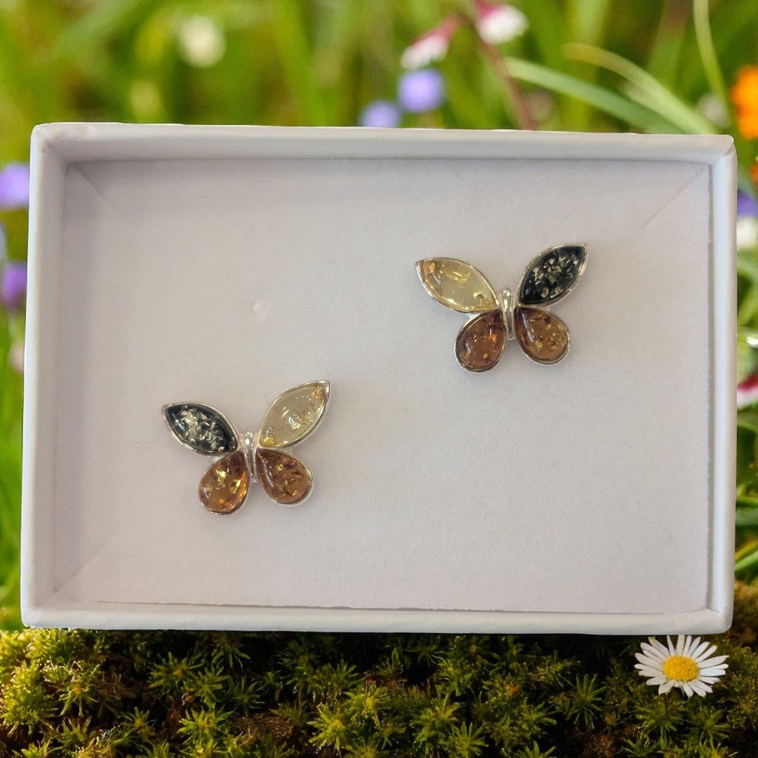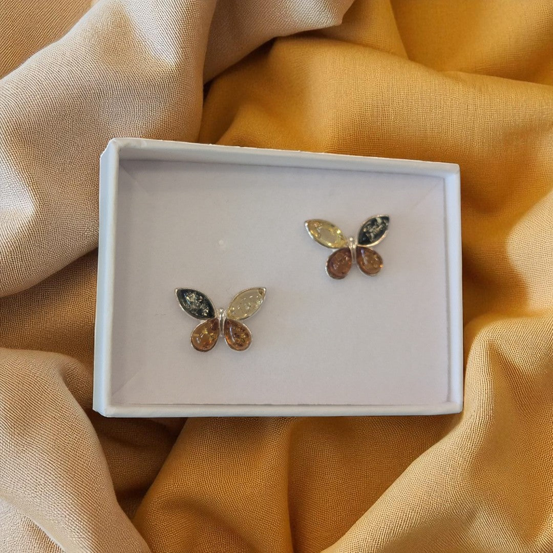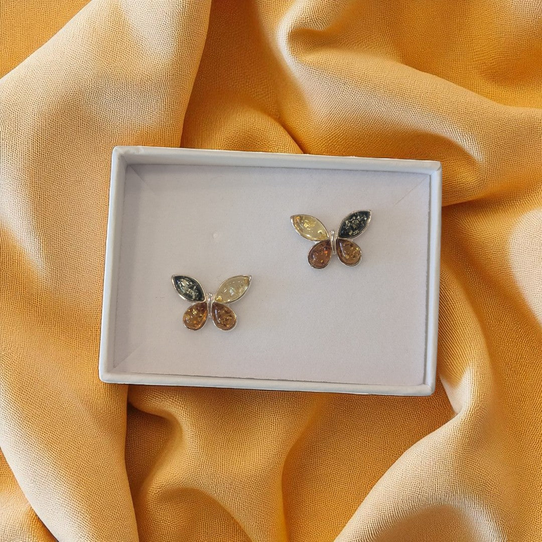 Sterling Silver Multi Amber Butterfly Stud Earrings