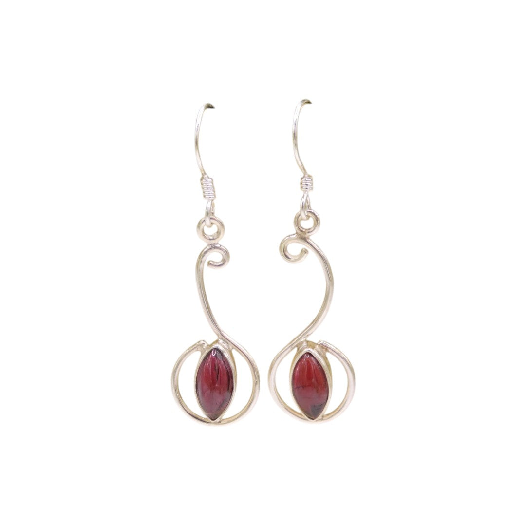 Sterling Silver Garnet Curved Drop Earrings 1.6"
