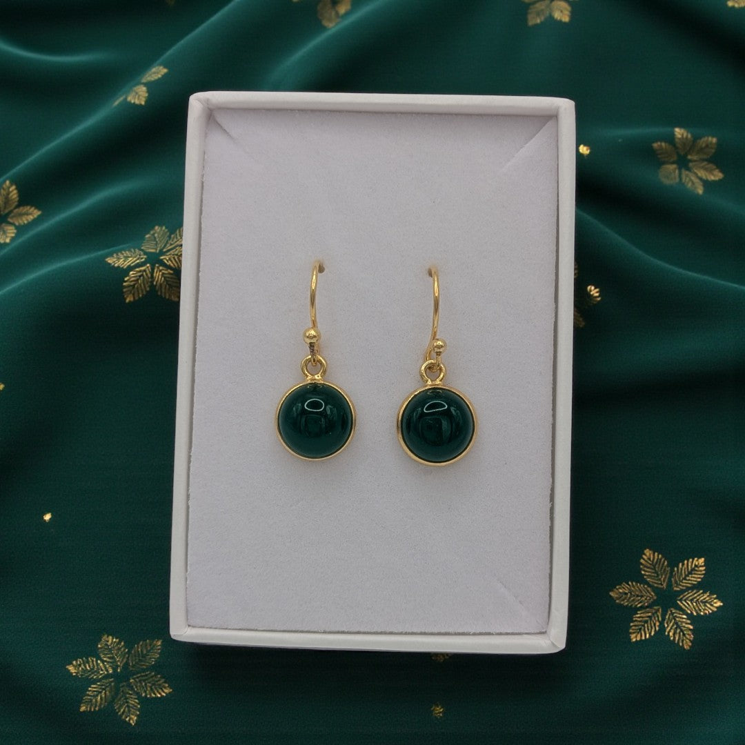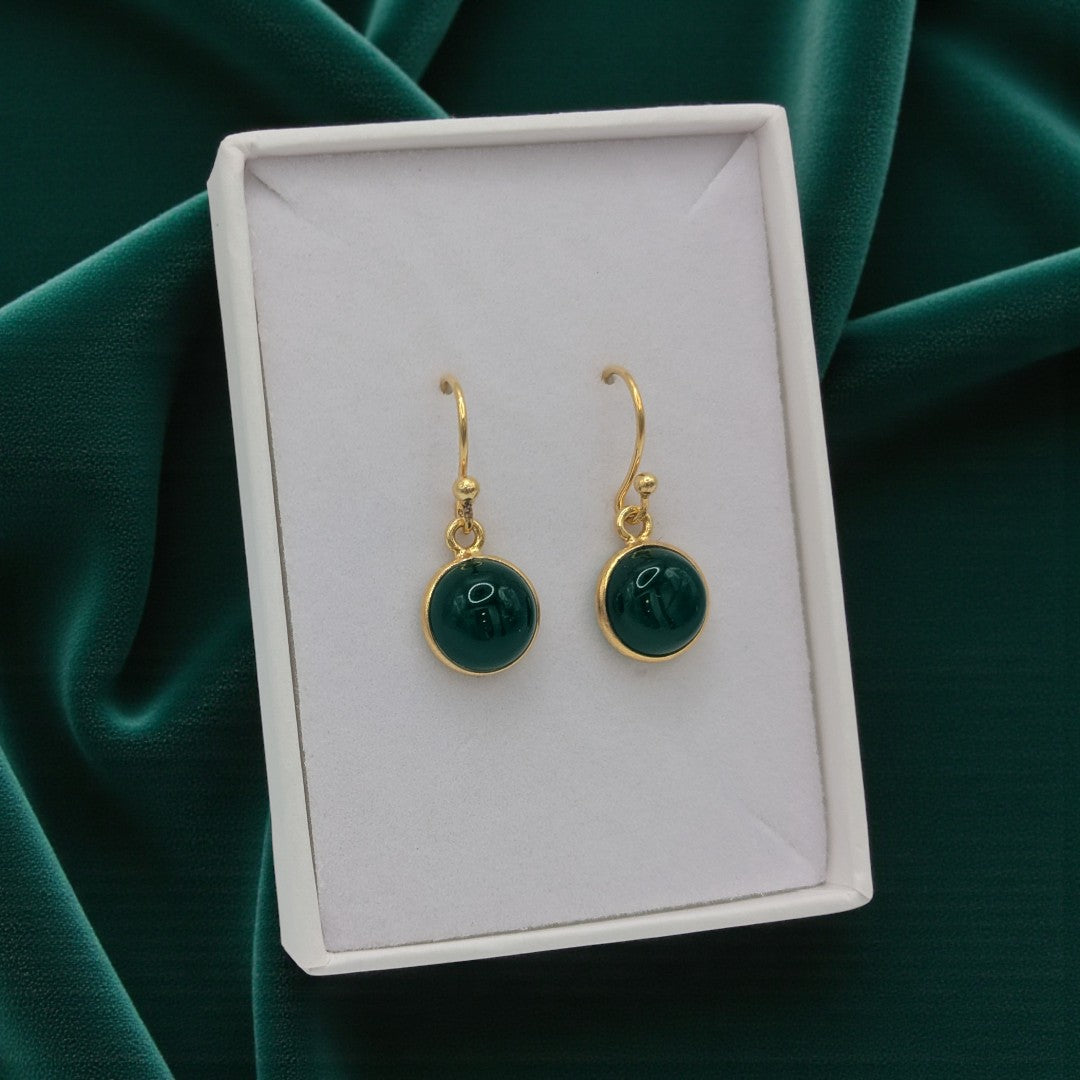 Emira Gold Plated Sterling Silver Green Onyx Round Stone Drop Earrings