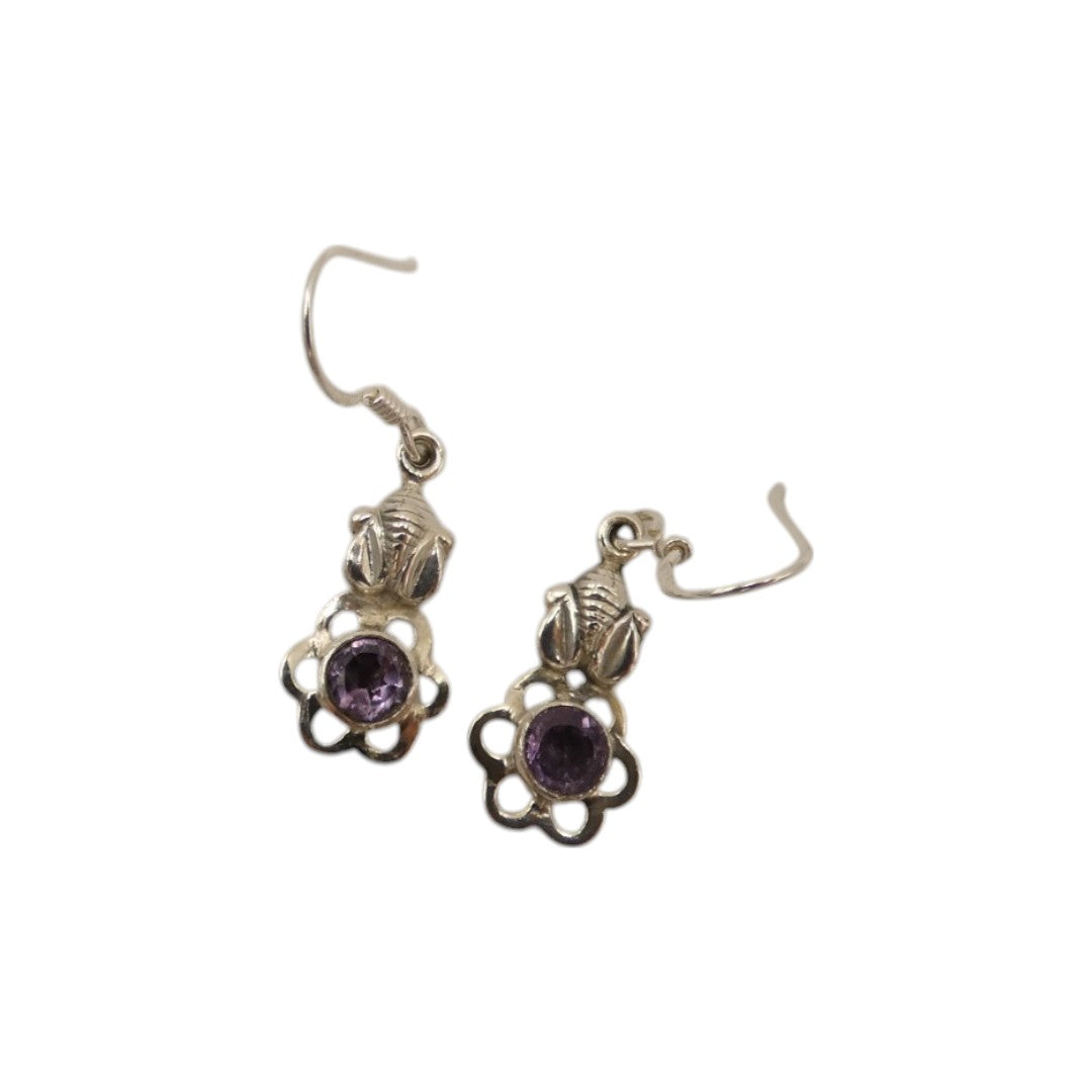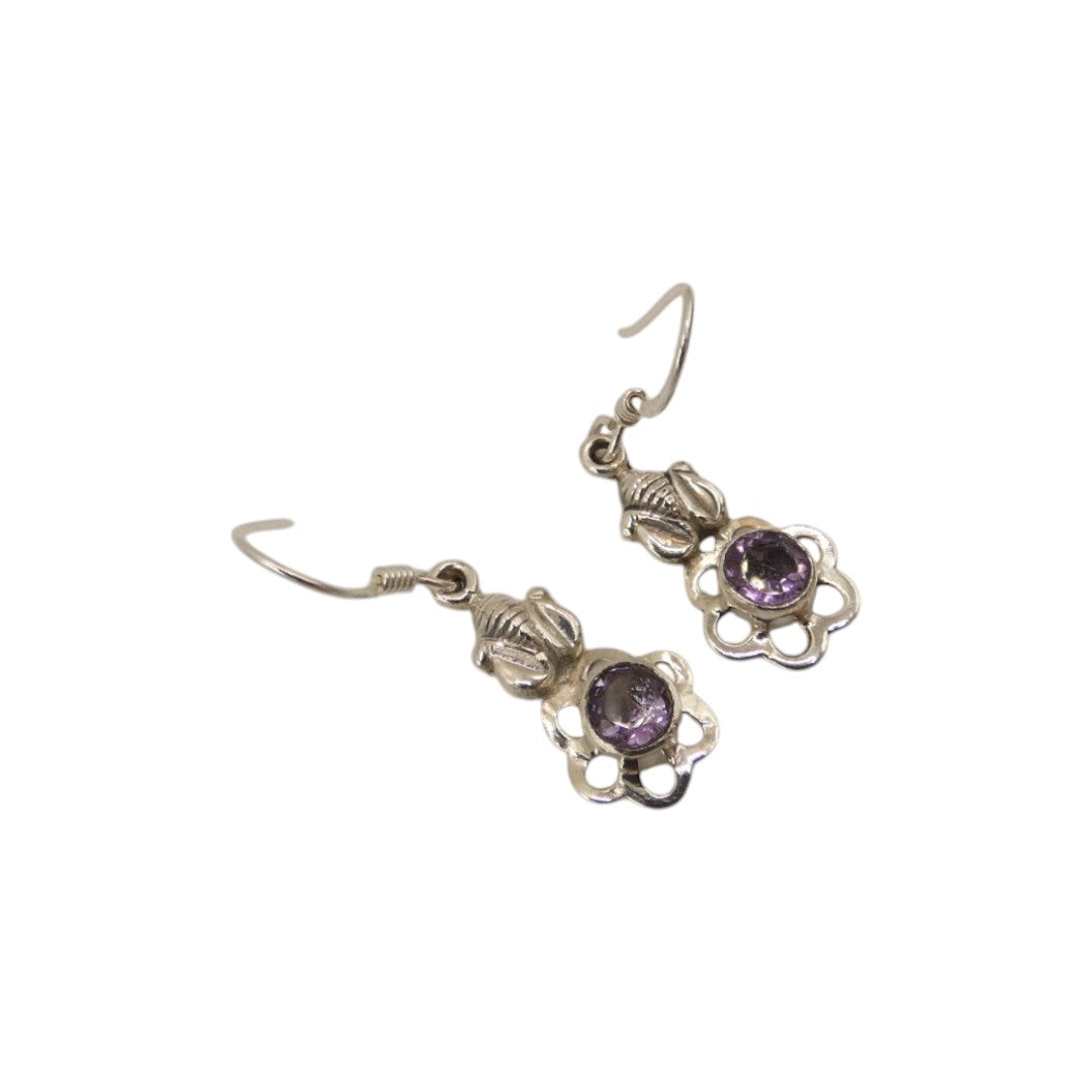 Sterling Silver Amethyst Flower Drop Earrings 1.4"