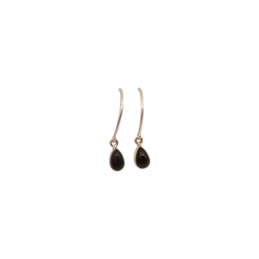Sterling Silver Black Onyx Hoop Earrings With Drop Stone 0.75"