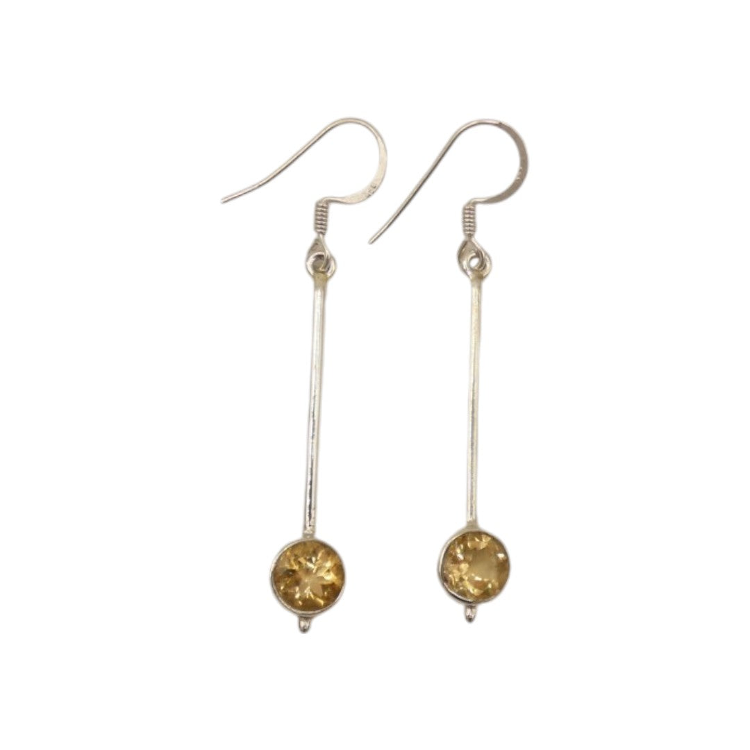Sterling Silver Citrine Straight Drop Earrings With Round Stone 2"