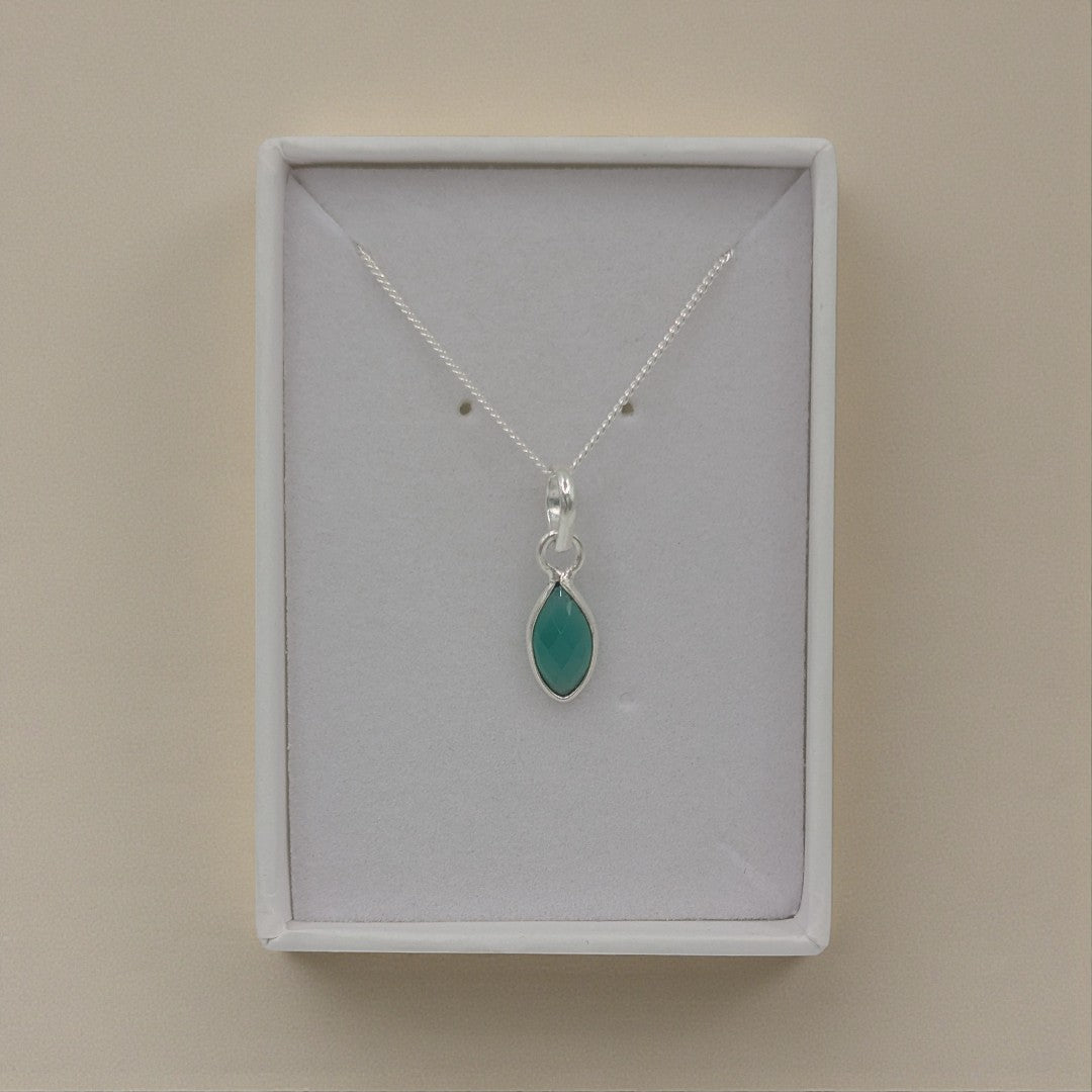 Sterling Silver Dainty Green Onyx Diamond Shape Stone Necklace