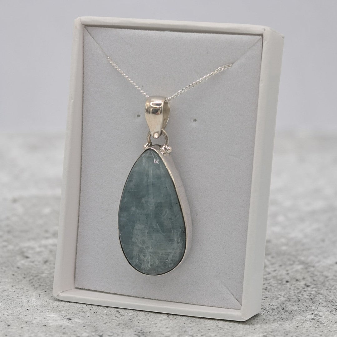 Made with sterling silver, this necklace features a beautiful 1.8 inch Aquamarine teardrop pendant. The 18 inch sterling silver chain adds a touch of elegance to the overall design, making it a timeless and versatile addition to any jewellery collection.