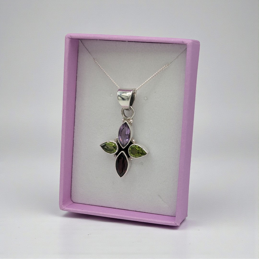Sterling Silver Emira Amethyst, Peridot & Garnet Multi Stone Necklace