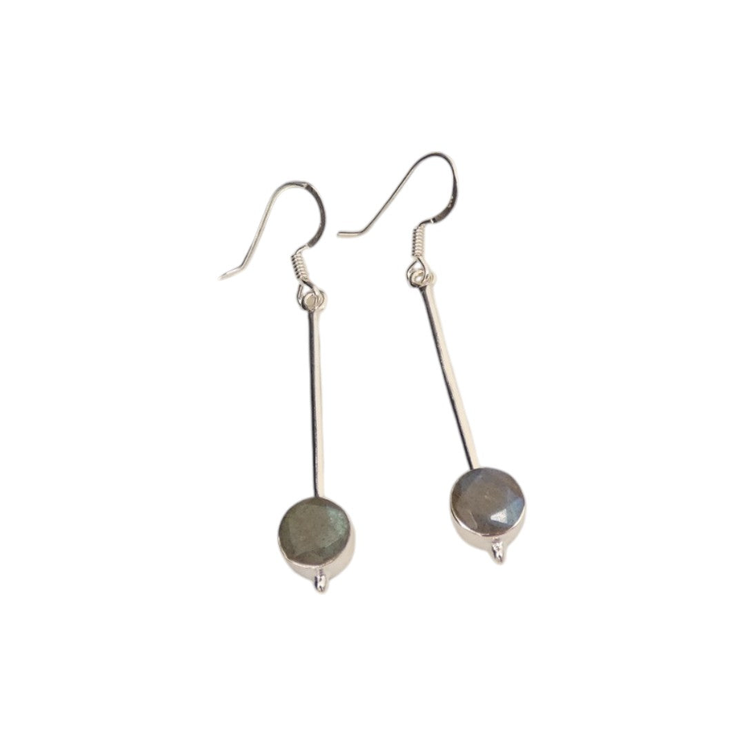 Sterling Silver Labradorite Straight Drop Earrings With Round Stone 2"