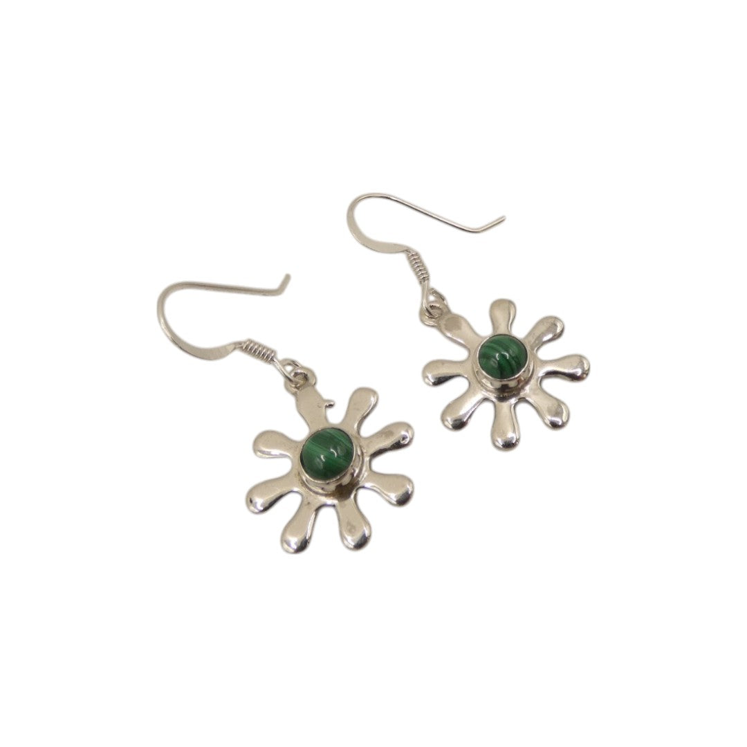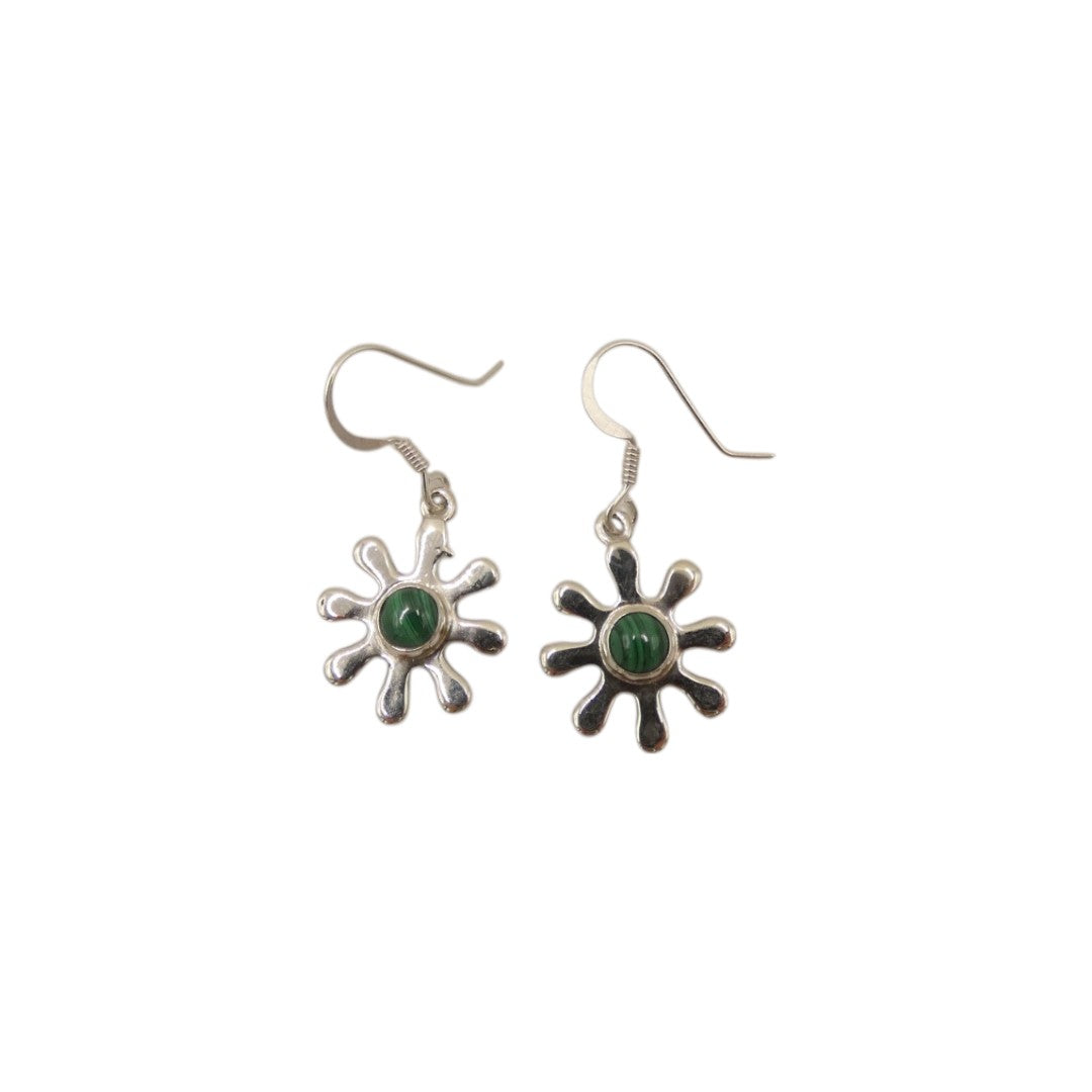 Sterling Silver Malachite Daisy Design Drop Earrings 1.4"