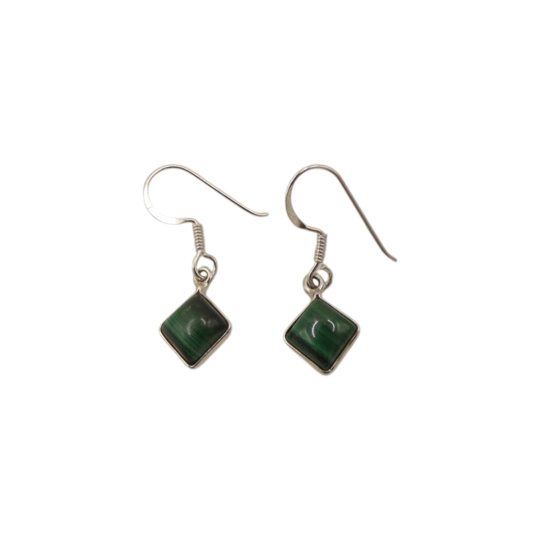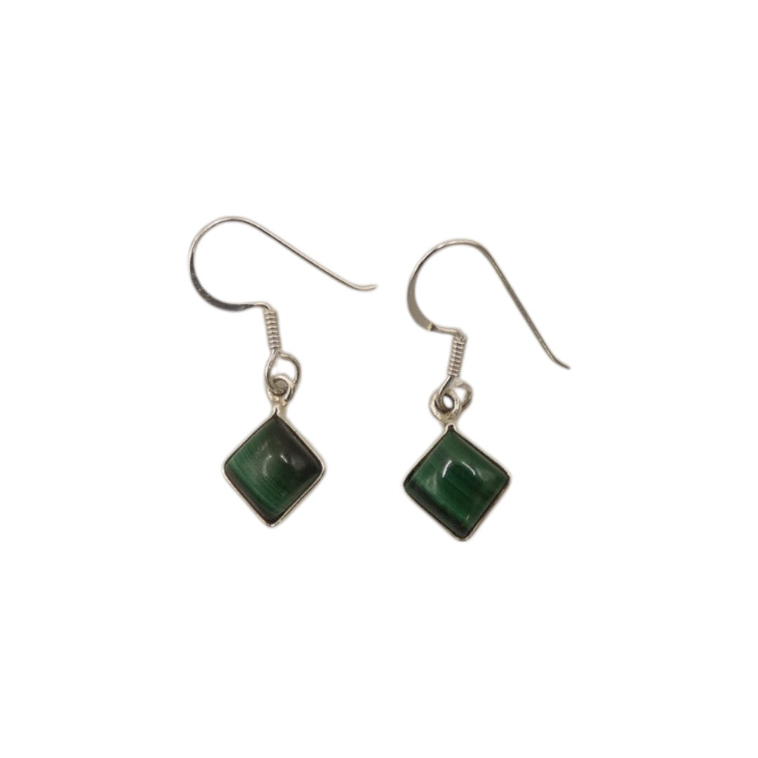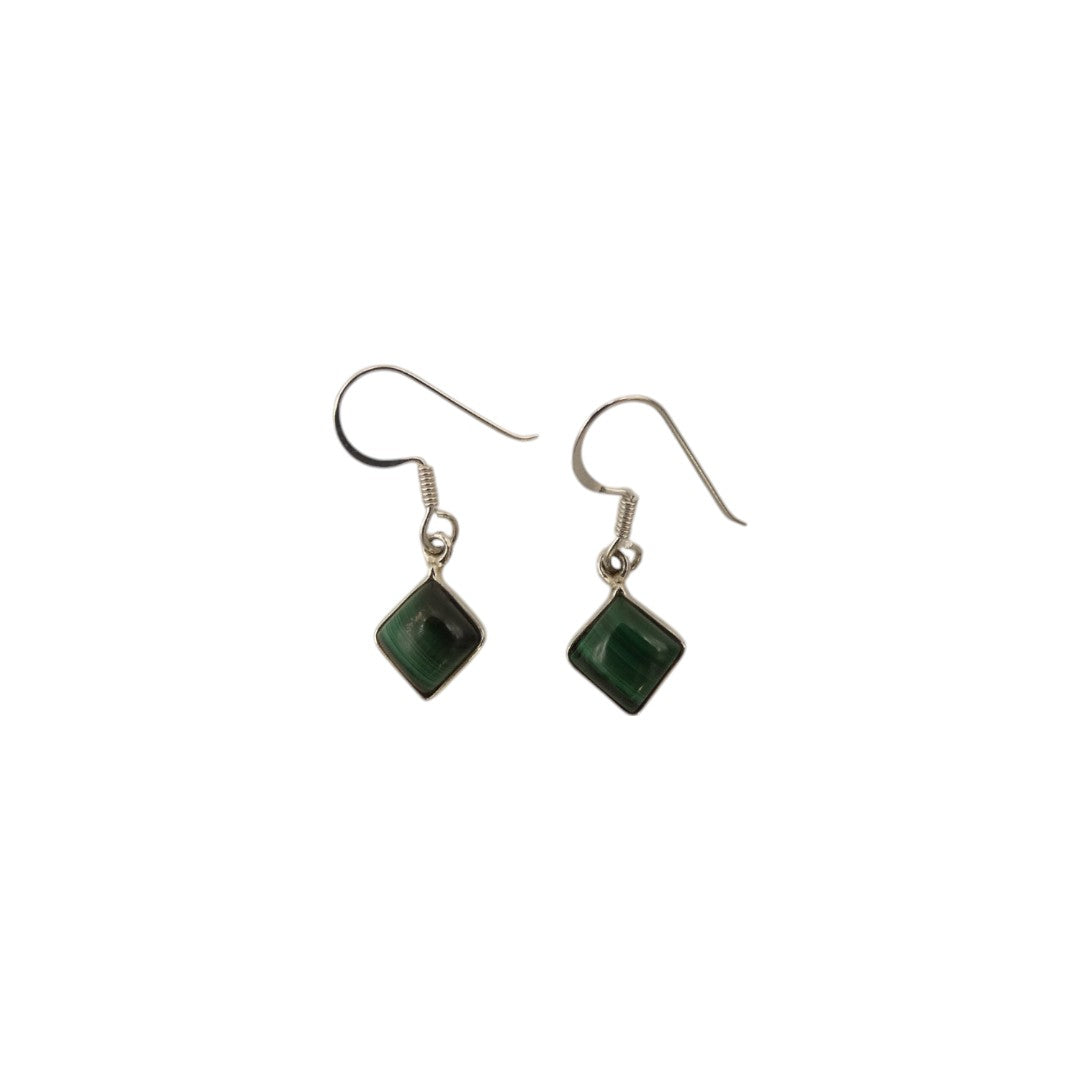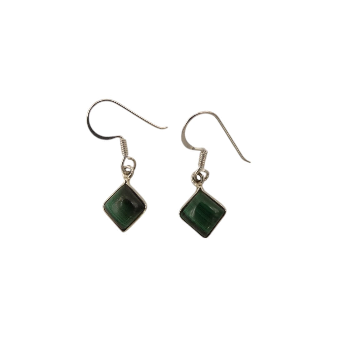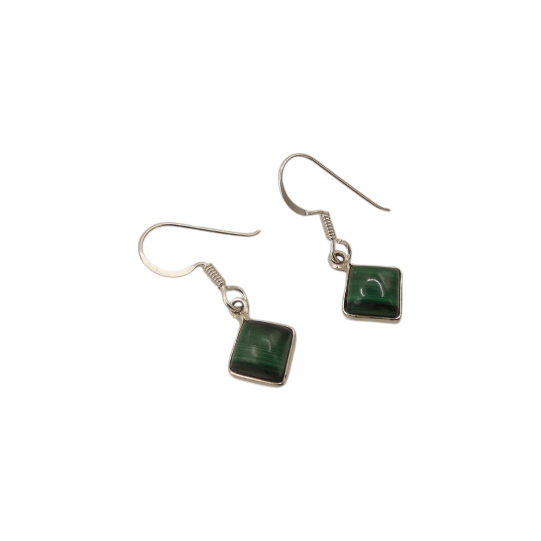 Sterling Silver Malachite Diamond Shape Drop Earrings 1.1"
