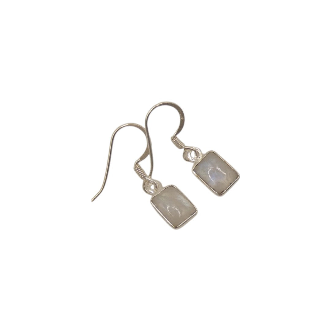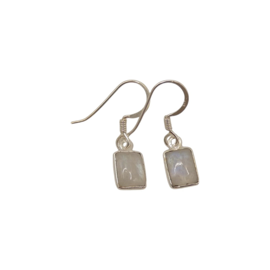 Made from sterling silver, these Moonstone Rectangular Drop Earrings add a touch of elegance to any outfit. Measuring 1.1 inches, they are versatile for both casual and formal occasions.