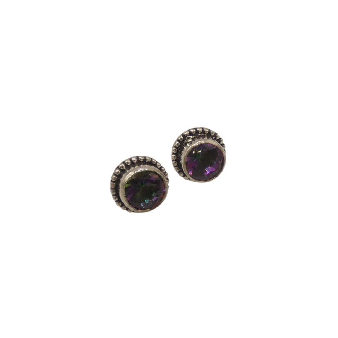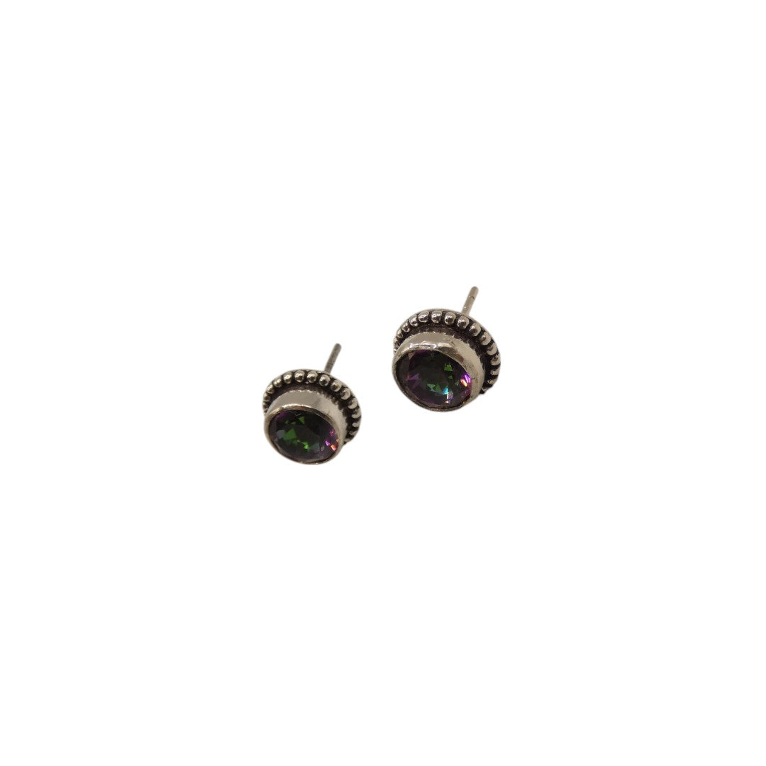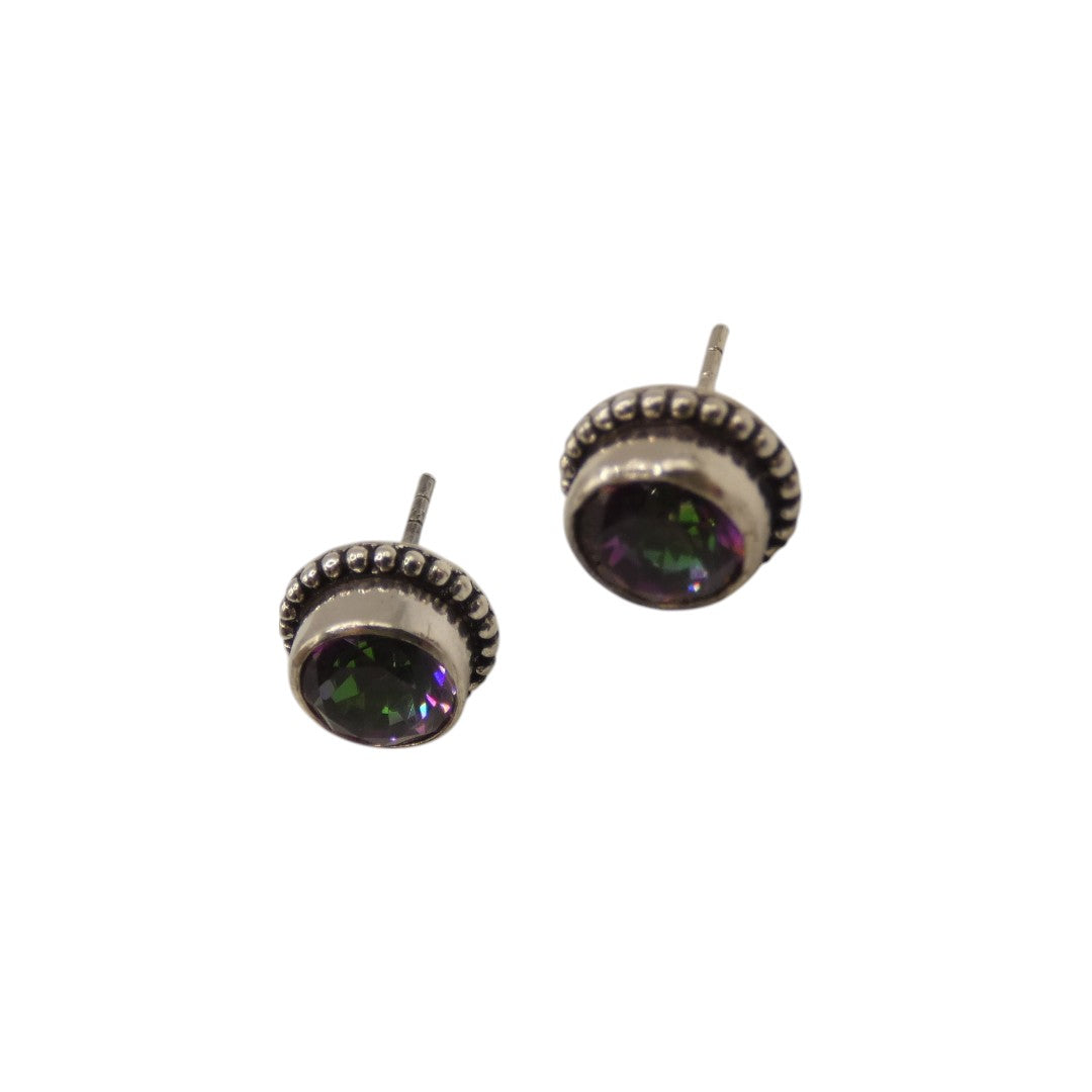 Sterling Silver Mystic Topaz Stud Earrings With Sectioned Trim 0.3"
