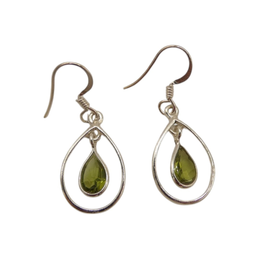 Sterling Silver Peridot Open Teardrop Shape Earrings 1.4"