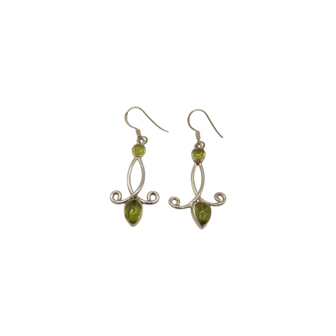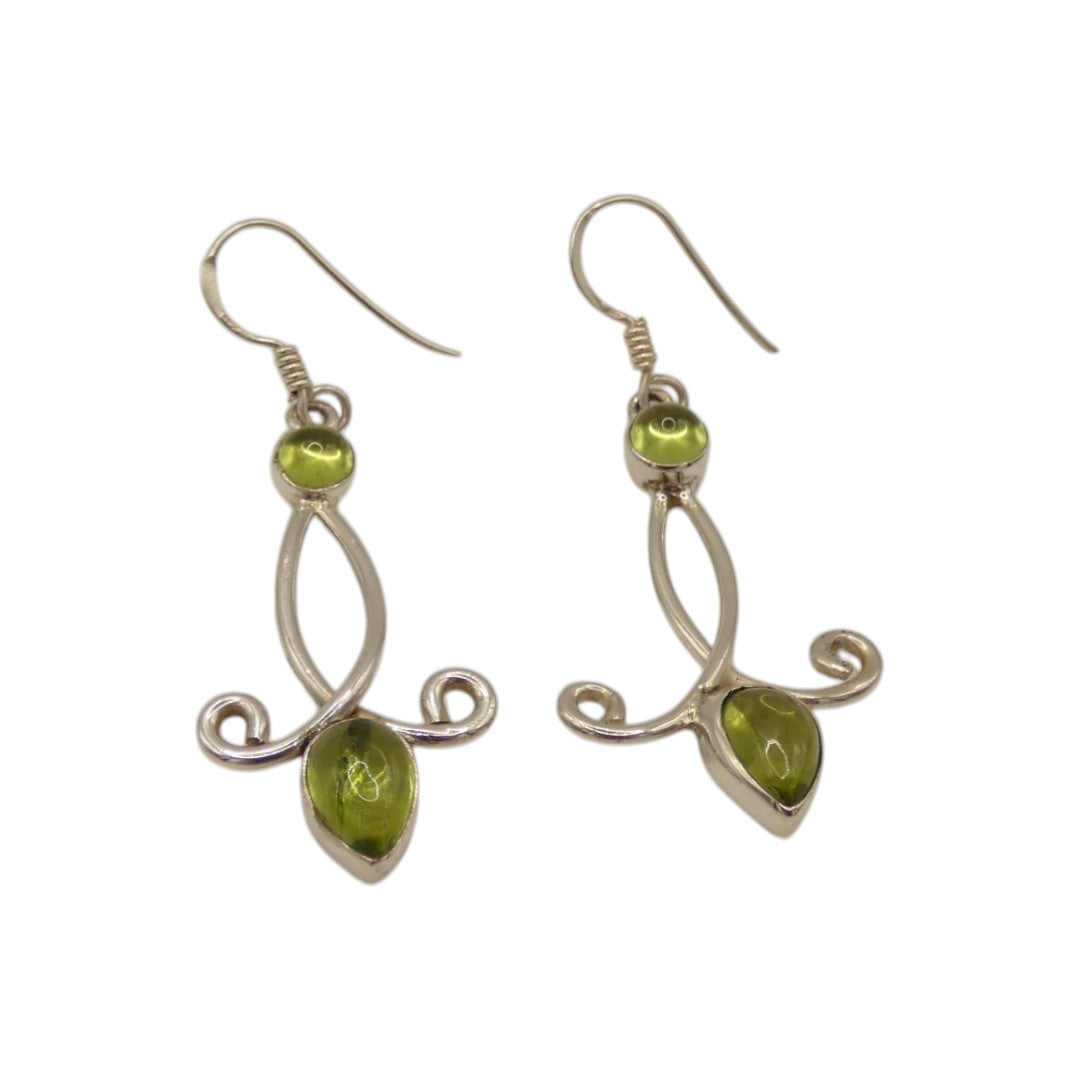 Made from sterling silver, these Peridot Ornate Double Stone Drop Earrings add a touch of elegance to any outfit. Measuring 1.9 inches, they are versatile for both casual and formal occasions.