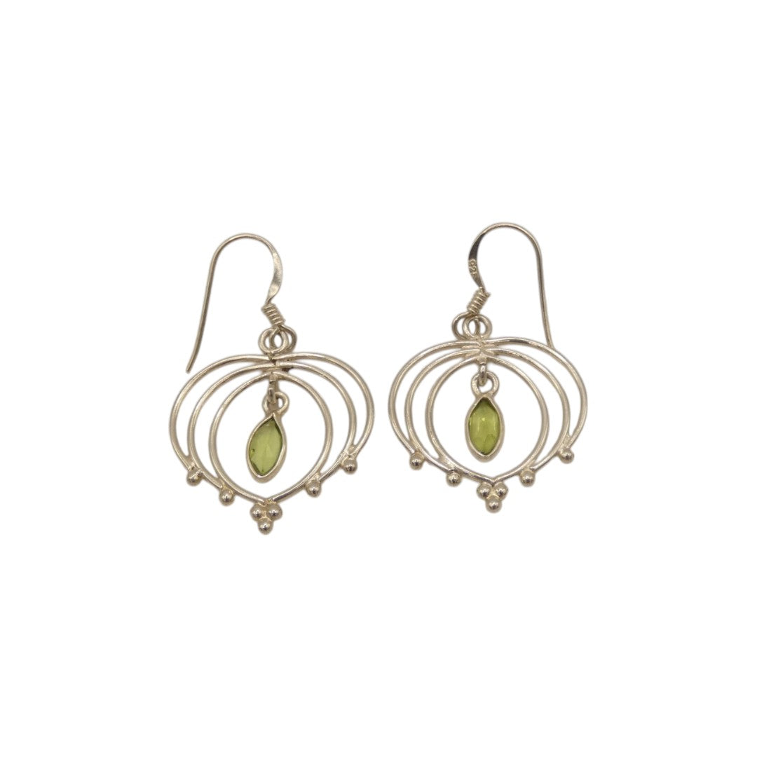Sterling Silver Peridot Semi Swirl Drop Earrings 1.6"