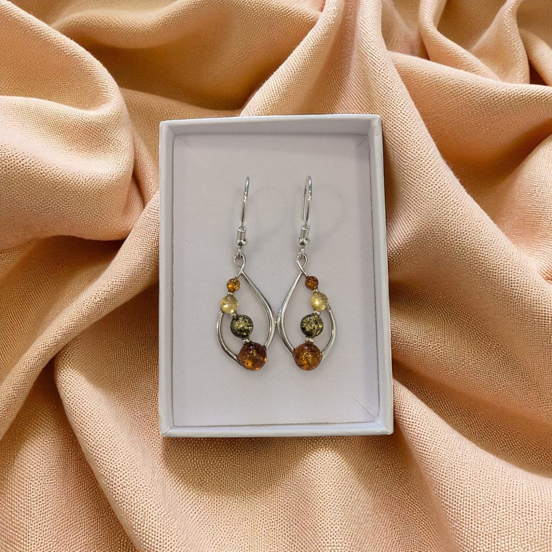 Sterling Silver Tri Coloured Amber Four Stone Drop Earrings